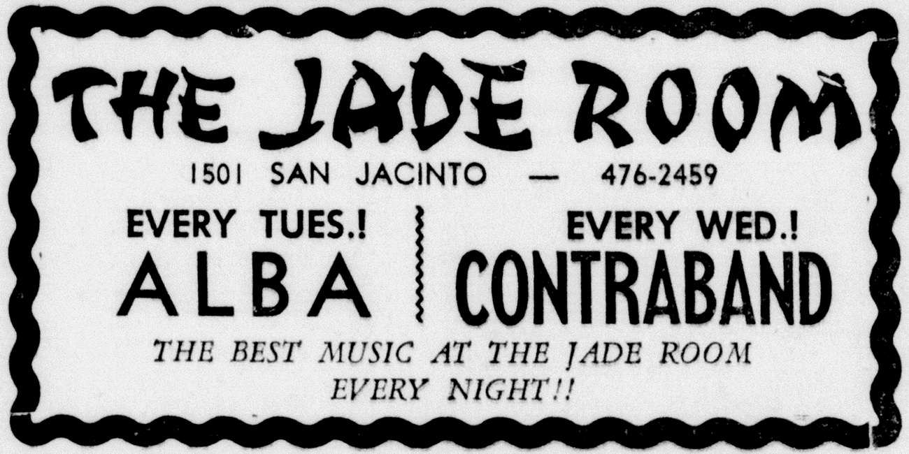 Contraband kicked around Austin for at least two years, playing all the River City’s major nightclubs, including the Action Club, Cave Boogie Joint, Jade Room, and New Orleans Club. In March 1971, the band won in the pop-rock category at The University of Texas Intercollegiate Music Festival and performed at The University of Texas “East Mall Ball” the following month, sharing the stage with Genesee, Phoenix, Rusty Wier, and Shiva’s Headband, all Sonobeat recording artists, among other top regional acts.