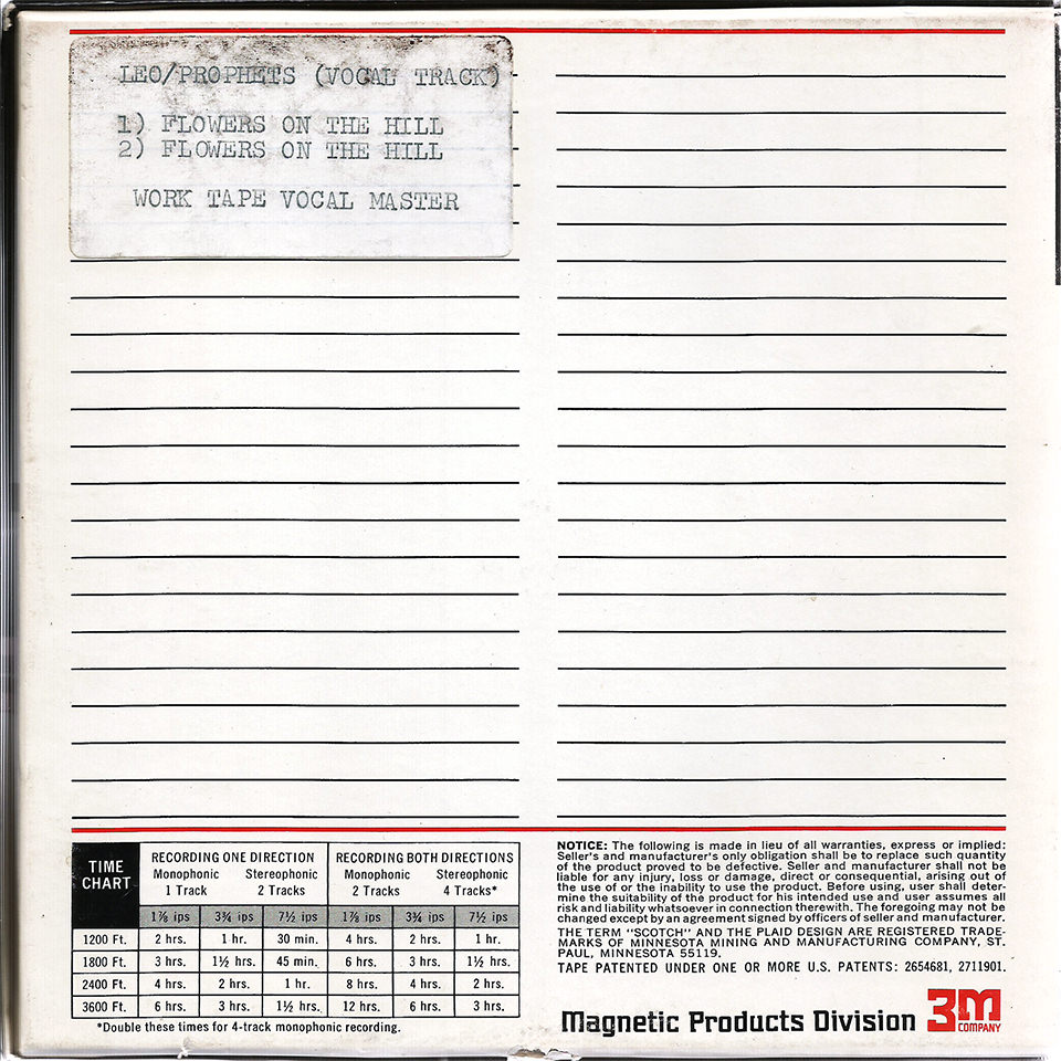 Only one Leo and the Prophets track, Flowers on the Hill, was completed with vocal overdubs, in a session on July 16th at the KAZZ studios in downtown Austin. Although Flowers on the Hill had potential as the “A” side of a commercial single release, both the band and the Joseys believed neither of the other two tracks would make a good “B” side. The band never came up with a second commercially-viable song for the “B” side and missed an opportunity to be Sonobeat’s first commercial release. In fact, the Prophets ended up a one-hit-wonder with Tilt-A-Whirl, now considered a Texas garage rock classic. The band had a little over a one-year lifespan, beginning in 1966 as a retooling of Austin band J.C. and the Boys by Leo Ellis, who had played guitar in several Austin jazz combos and fronted his own jazz trio before turning to the then-current and hot psychedelic trend pioneered by the 13th Floor Elevators. He reputedly was a fan of Kahlil Gibran’s The Prophet, a collection of fables told in both prose and poetry, which was likely the basis for the band’s name.