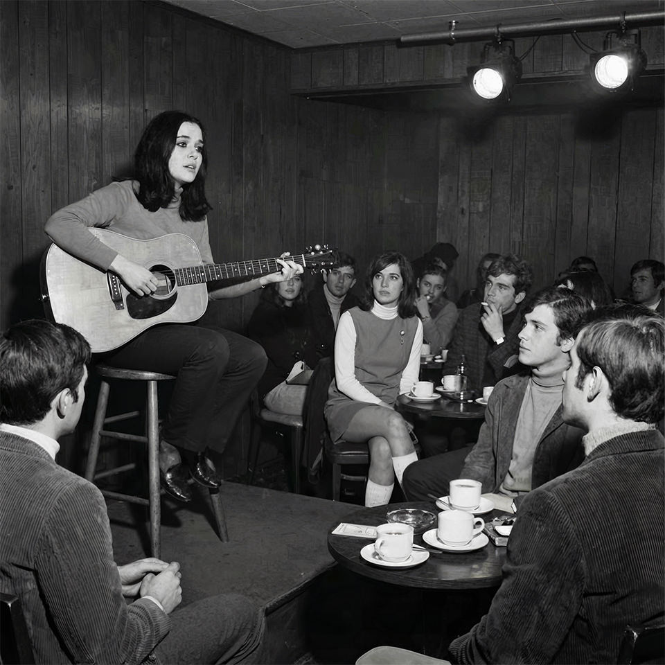 Fran’s KAZZ test recordings featured Beg Me Blues and Sad Stranger Blues, both likely Fran’s originals, a lovely cover of folk star Carolyn Hester’s Tomorrow When I Wake Up, several takes of Fran’s sultry cover of Stevie Wonder’s Come Back Baby, and a simple version of her own No Regrets, all self-accompanied on standard guitar. But the recordings (taped on off-brand Sheraton AP-12 tape stock) were amateurishly recorded and useful only as raw examples of Fran’s guitar and vocal skills. Nonetheless, her performances on the KAZZ broadcasts from The 11th Door and on the KAZZ recordings influenced Bill Sr.’s decision to record a stereo single with Fran once he and Bill Jr. formally launched Sonobeat in mid-’67. In the meantime, impressed with her talent, Bill Sr. introduced Fran to Don Dean, manager of Austin’s swanky downtown Club Seville. Don booked Fran into the Seville’s posh Embassy Room for a series of Thursday evening performances beginning in May 1967. Fran’s first performance there, on May 11th, followed magician Gene de Jean’s performance, but Fran’s set was more magical than Gene’s.