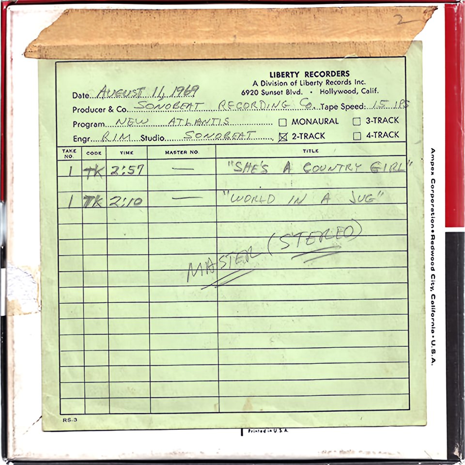 This second round of New Atlantis sessions featured no originals, focusing instead on solid covers of She’s a Country Girl, B.B. King’s blues-rock classic, and World in a Jug, the “B” side of Canned Heat’s 1967 single Rollin’ and Tumblin’. Bob Galindo recalls that New Atlantis II also recorded covers of If I Were a Carpenter and Red Balloon, both songs composed and originally recorded by Tim Hardin, but we’ve never found either of those tracks in the Sonobeat archives.