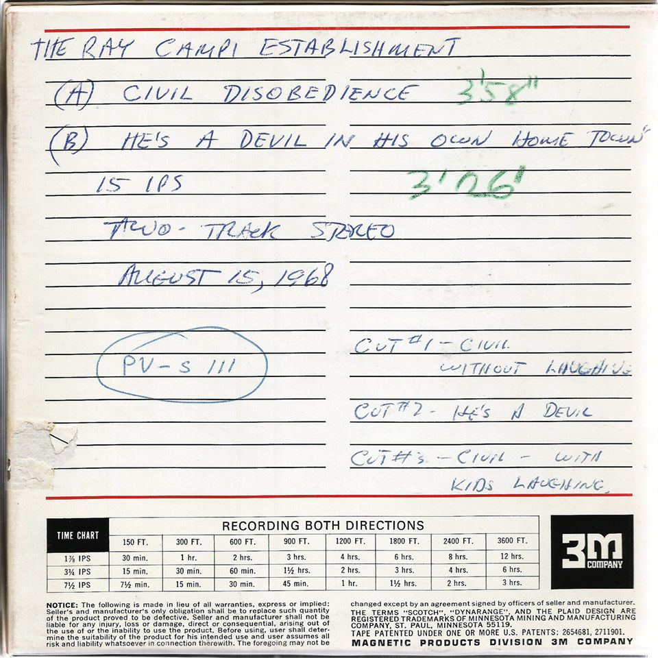 “A” side: Civil Disobedience (Ray Campi) • 3:58